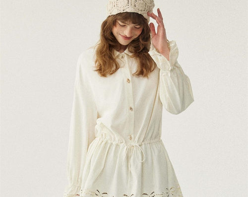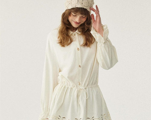 Lace Detail Classic Long Blouse